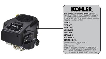 Web Kohler Engines Have Identification Numbers That Include A Model, Serial, And A Specification Number.