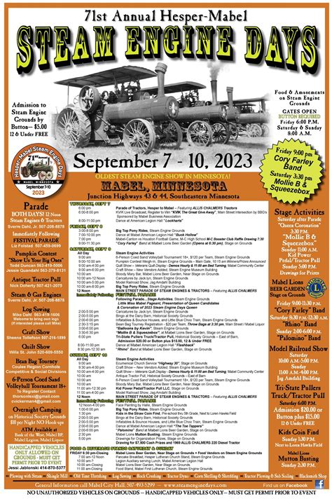 Held september 8th and 9th, 1973. If you would like to add events, please post current and correct information. Web steam engine days park is located at in mabel, minnesota 55954.