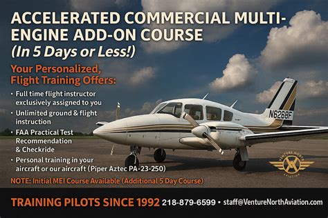 Multi Engine Accelerated Course. 3 days of training, plus 1 day for. The flight club has three of these aircraft.